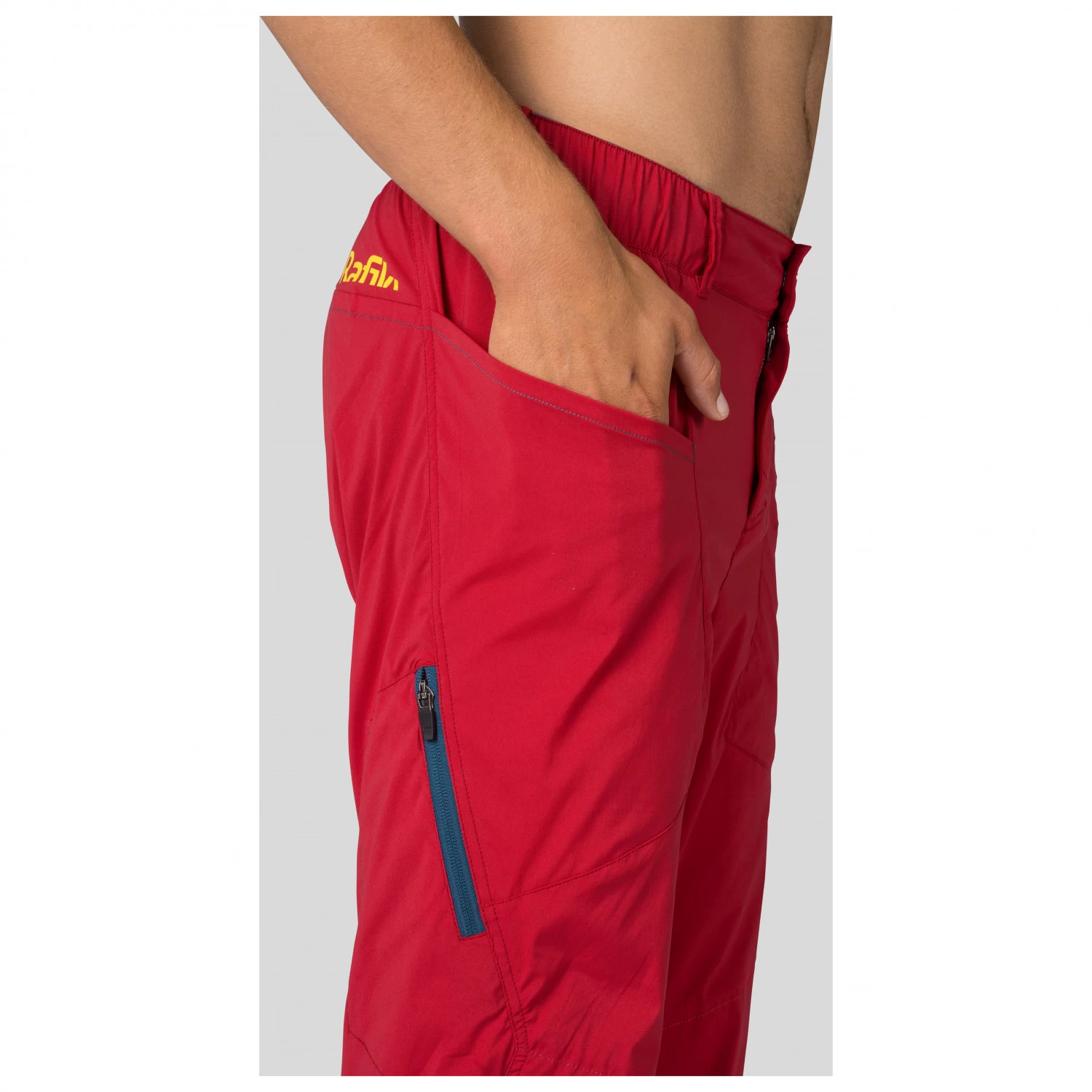 Thanks to the blend of cotton and elastane, the trousers are breathable and stretchy. This offers flexibility and freedom of movement, so you will feel comfortable in the hall and in the great outdoors. In addition, their elastic waistband won’t constrict you, but rather sits nicely on the body. Thanks to the elastic leg cuffs, you can make adjustments to prevent them from getting in your way whilst climbing. The ideal climbing trousers – the functional and comfortable Crag from Rafiki.