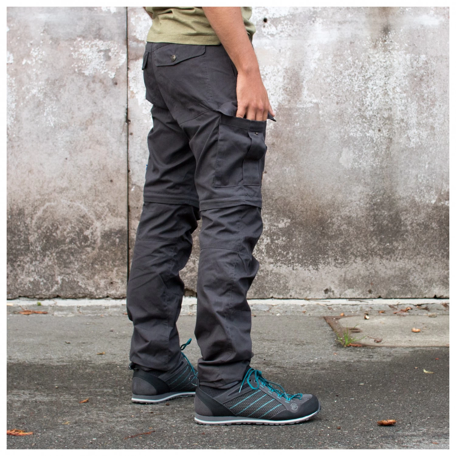 A durable trekking pant which is a great companion on every adventure- The Karl Pro Zip-Off Trousers by Fjällräven. As the name already gives away, it is a zip-off pants and thus it can easily be converted into short pants. If you have to cross a river or it’s simply too warm, quickly zip-off the pant legs and let your adventure continue. The regular fit is not too tight and not too wide, thereby the pants feel very comfortable. The trekking pants are made of G-1000 Silent, a material developed by Fjällräven. The mixtures of polyester and cotton is extremely durable, soft and breathable. The preformed knees and an activity-friendly crotch area allow for full flexibility and will not hold you back. Many different pockets offer plenty of storage space, so that the most important things can be ready at hand. Any path and any adventure can be mastered with the Karl Zip-Off Pants.