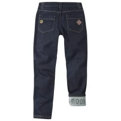 True to the distinctive Moon look, where less is more, like their namesake, the Hubble X Slim Fit Jean makes a powerful statement. Slim fit and with an urban feel, the stretchy, heavy duty fabric and clever design give a functionality that most jeans lack when it comes to moving on rock ¬- or plastic. Branding on the pockets and the discreet leather badge fits with our understated approach. The Moon screenprint on the turnups says more, if you want.